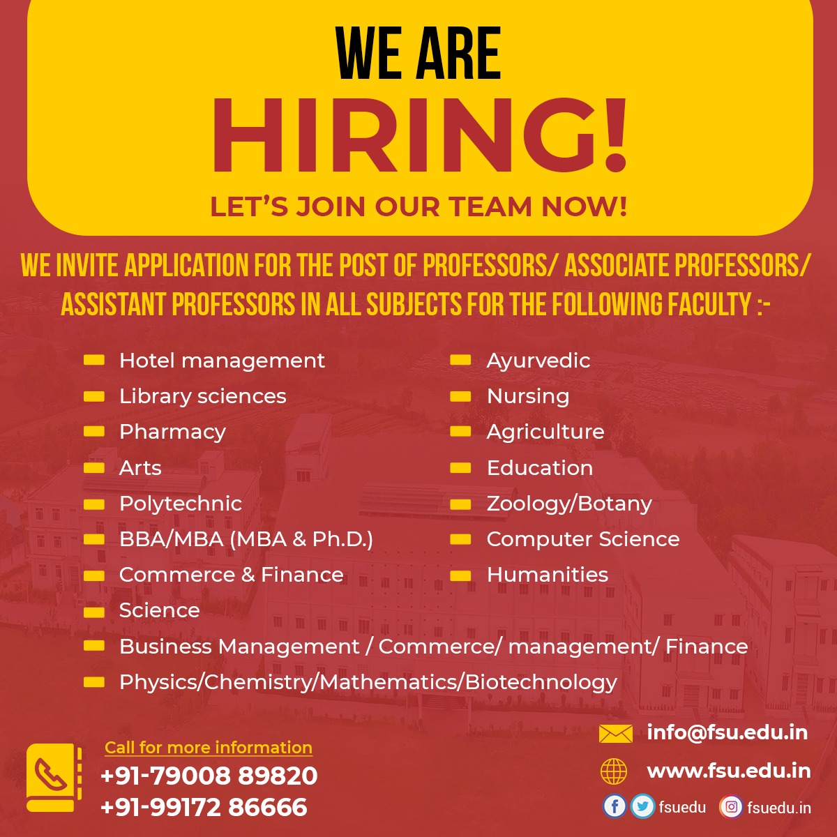 If you are available for work and wish to be considered for opportunities, please contact us! Carrers@fsu.edu.in